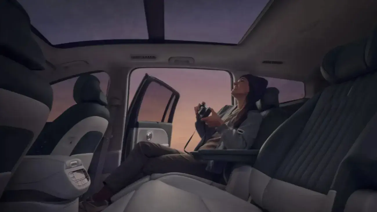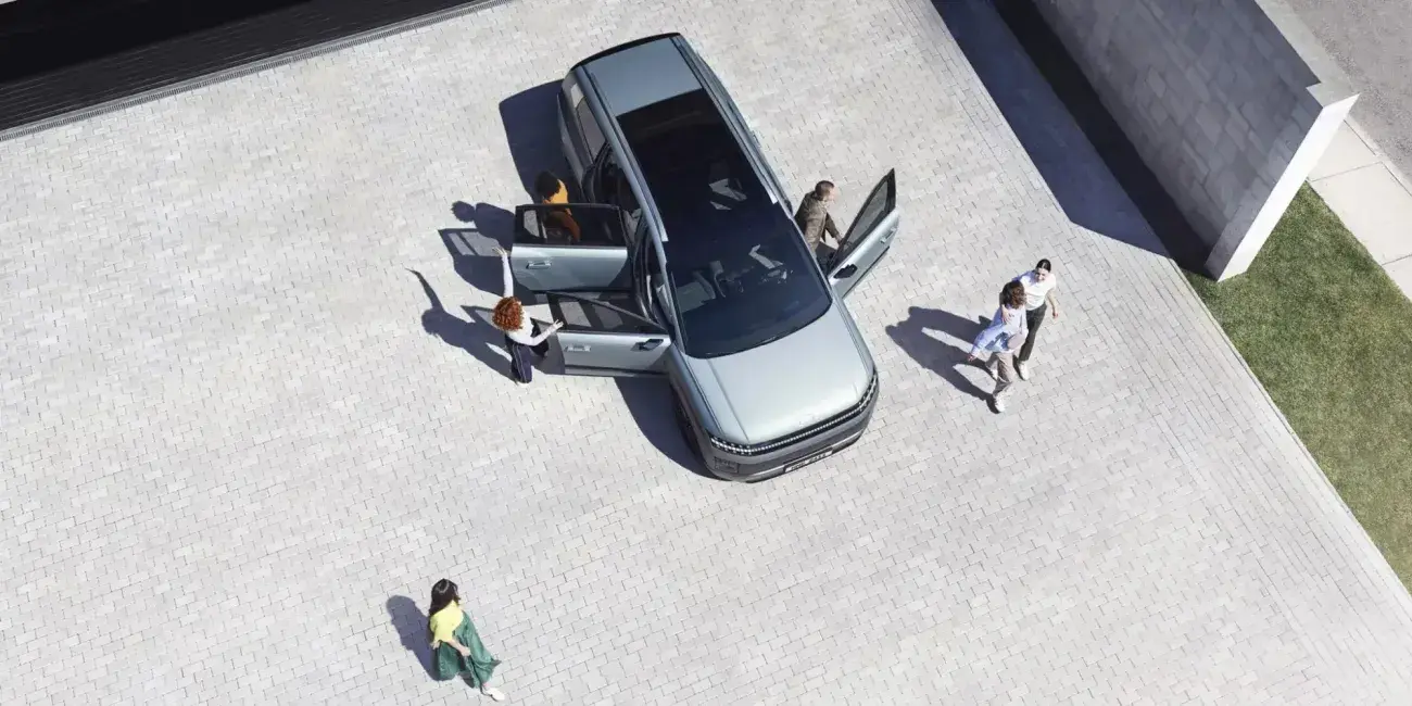 De nieuwe IONIQ 9 is ontworpen met enorm veel ruimte voor jou en de mensen met wie je je verbonden voelt. Het interieur onderscheidt zich door zijn ovale vormen en rustgevende kleuren, waardoor het voelt als een lounge. Door het panoramadak komt veel natuurlijk licht naar binnen, wat een rustige en aangename sfeer creëert. De nieuwe IONIQ 9 is een elektrische SUV met drie zitrijen, die baanbrekend design combineert met innovatieve technologie, speciaal voor elektrische auto’s.
